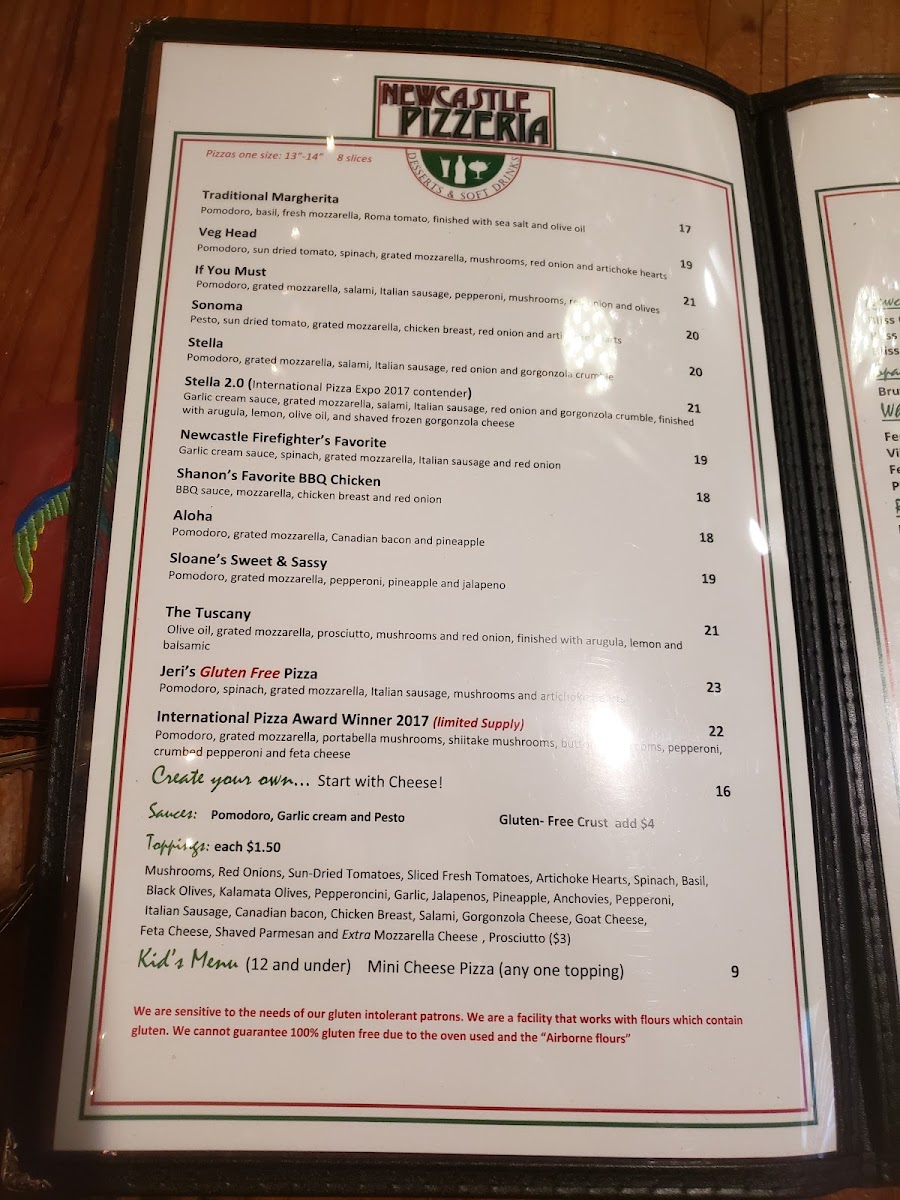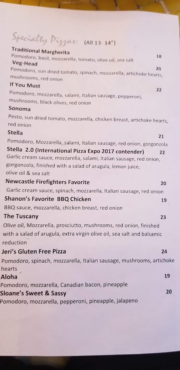 At Newcastle Pizzeria, the focus is on crafting delicious, high-quality pizzas using fresh, locally-sourced ingredients. The menu showcases a variety of specialty pizzas that cater to different palates, including the fan-favorite Sonoma, celebrated for its perfect balance of flavors and expertly cooked crust. Those seeking something hearty might delight in the If You Must pizza, a well-loved combination that impresses with its fresh toppings and satisfying blend of tastes. For a unique twist on tradition, you can't go wrong with the Newcastle Firefighters Favorite or Stella 2.0, both of which have been praised for their delightful flavor profiles and engaging textures.